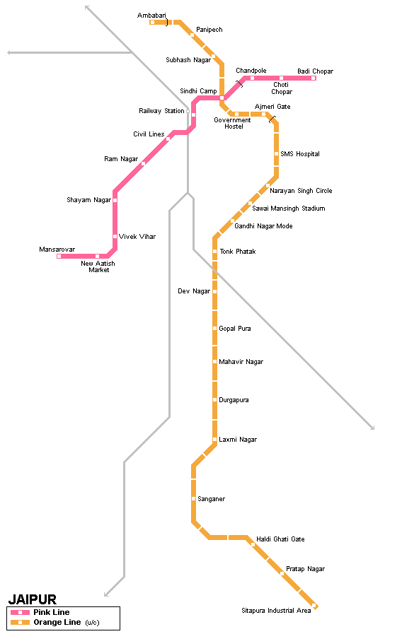 Jaipur Metro Rail Corporation (JMRC) operates the metro in the Pink City. The first section from Mansarovar to Chandpole was inaugurated on 3 June 2015. This makes Jaipur only the seventh city in India to have a metro rail system. Phase 2 expansion plans are actively being planned to extend coverage to more areas of the city.