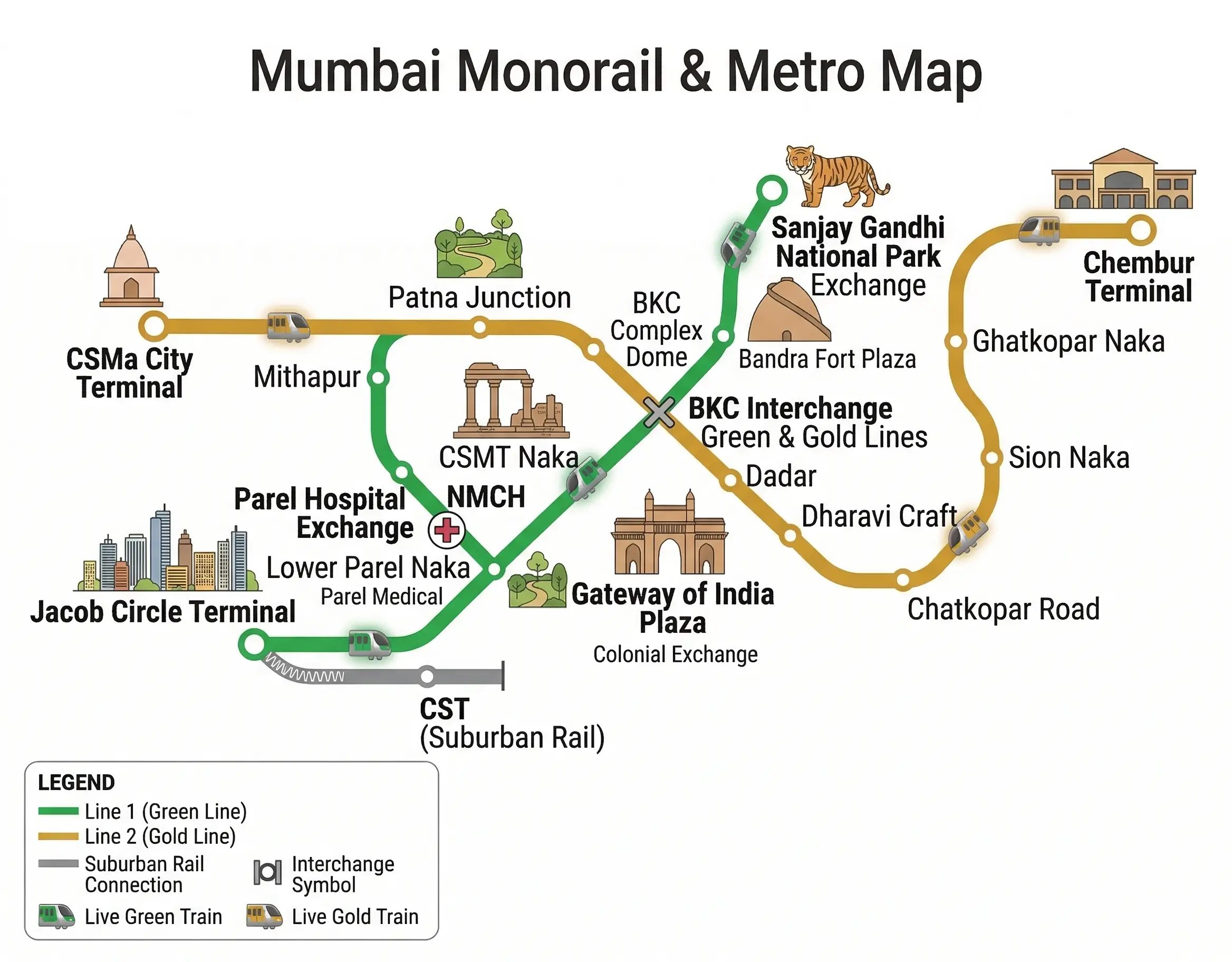 The Mumbai Monorail, operated by MMRDA, was inaugurated in two phases: Chembur to Wadala in February 2014 and Wadala to Jacob Circle in March 2019. It was India's first monorail after the Chennai Monorail and remains the only operational fully elevated monorail system in India.