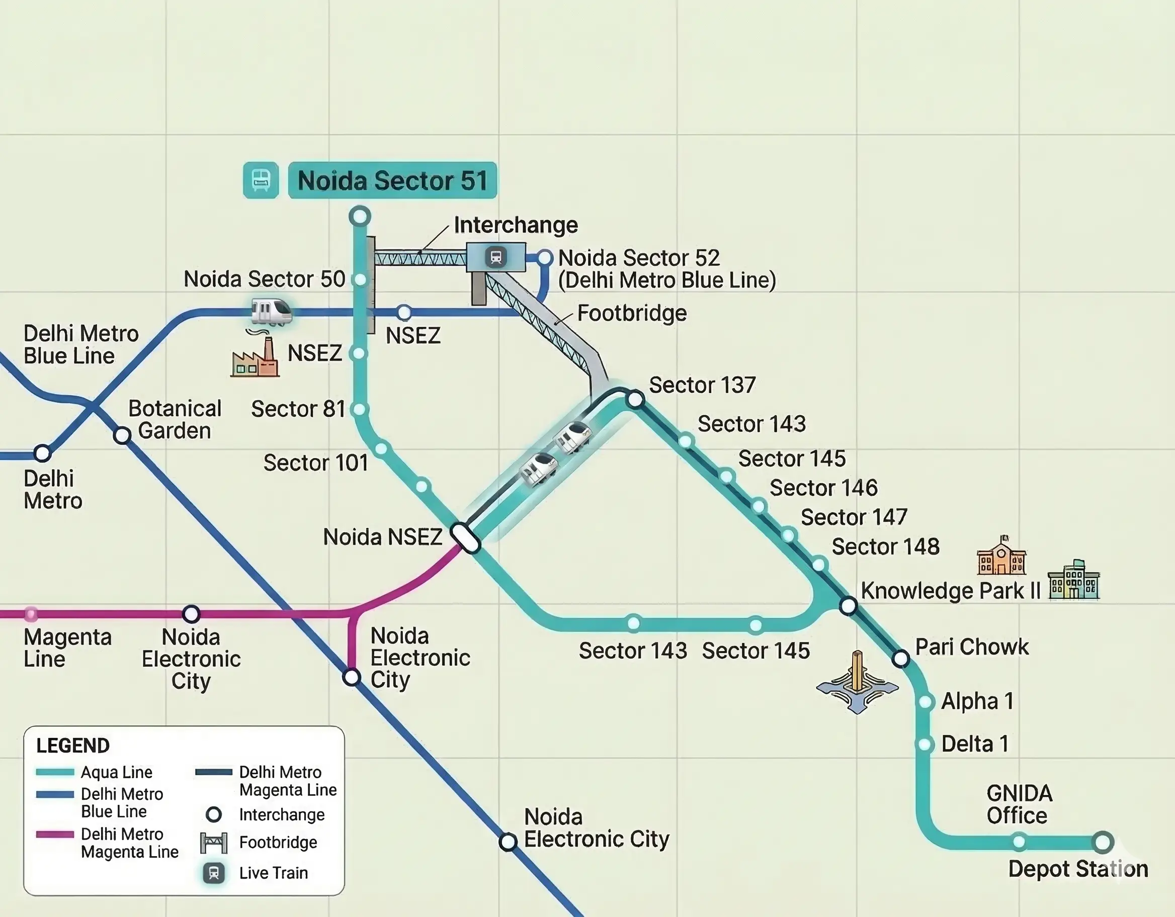 Noida Metro Rail Corporation (NMRC) operates the Aqua Line, India's first metro to be totally within a single city district (Gautam Budh Nagar) without extending to another city. It was inaugurated on 25 January 2019. Since then, plans have been underway to merge with the Delhi Metro Blue Line at Sector 137 for seamless transfers.